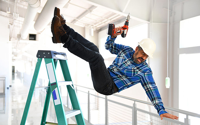 Strictly check gloves and boots for slippery and mud places, and wipe them off immediately. Get a hand or foothold before raising yourself. If possible, use a step ladder and make sure that you can climb up with the equipment safely.